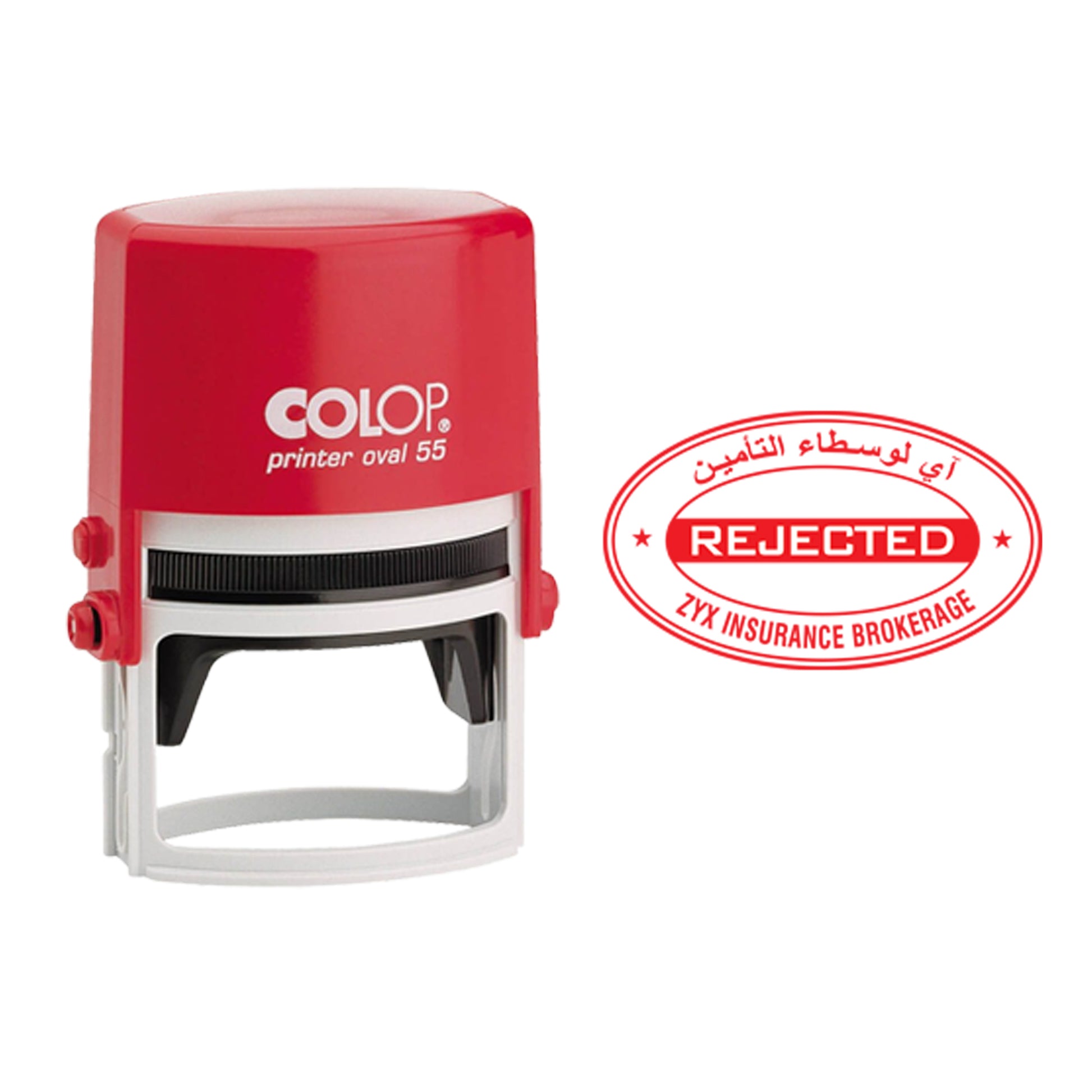 Order COLOP 35x55 mm oval self-inking stamp – perfect for logos, company seals & custom branding. Clean, professional impressions in blue, red, or violet ink.